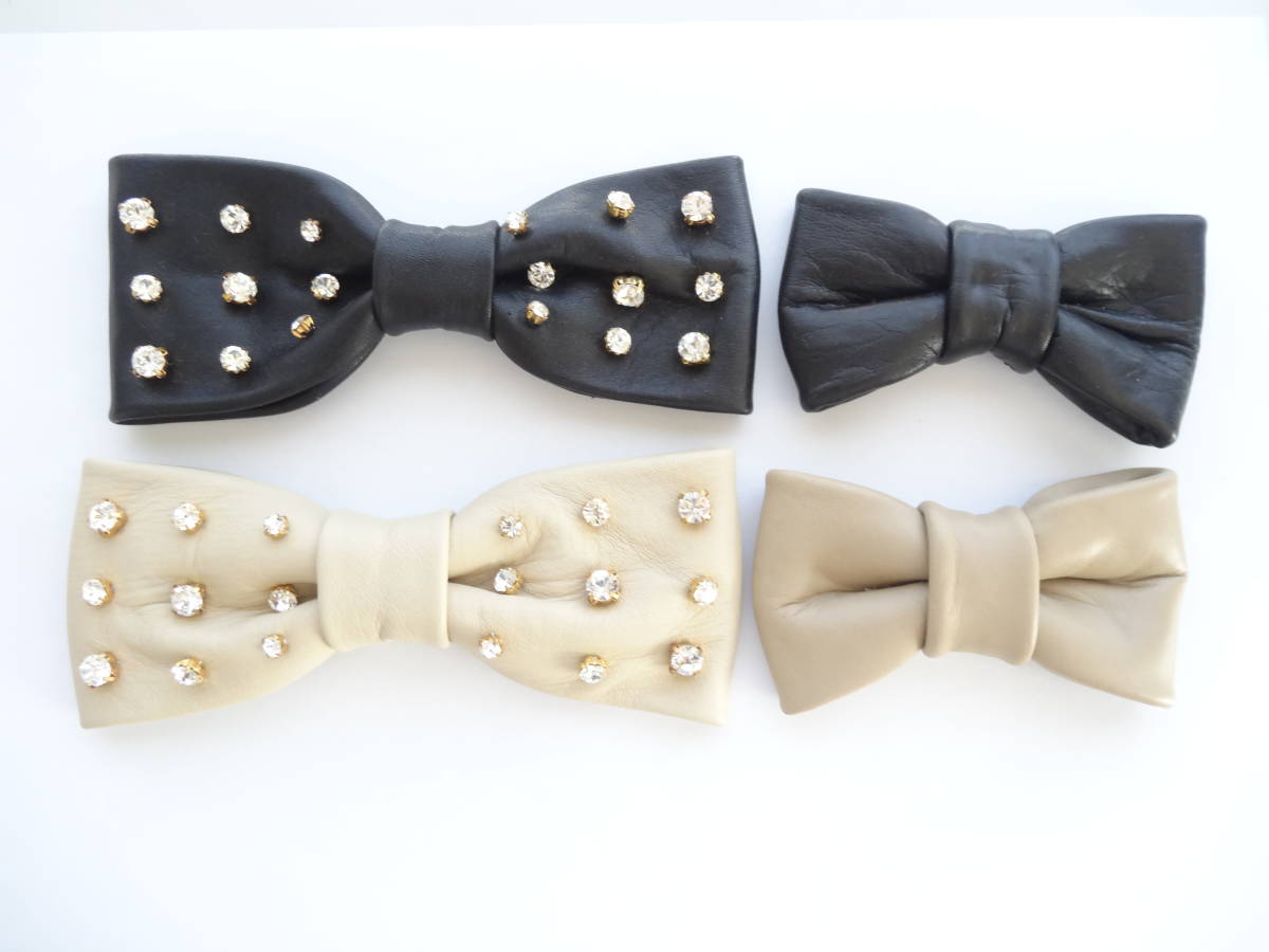 - レザーリボンモチーフ装飾 オーナメント スワロフスキー装飾付き ワンポイント ワッペン リボン飾り ハンドメイド ホビー