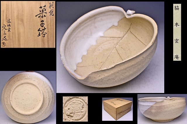 > 脇本定三 ★ 萩焼葉形菓子鉢 ★ 共箱栞 ★ 茶道具 ★ 勝坂窯 ★ 検 脇本玄庵 ★ 白釉 掛分