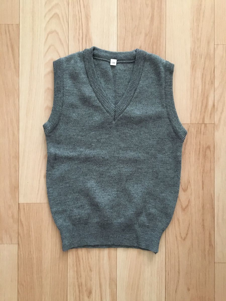 > ★ TOPVALU ニットベスト 120㎝ ★スクールベスト★キッズ 子供服 男の子 女の子 男女兼用★グレー はいいろ★イオン★