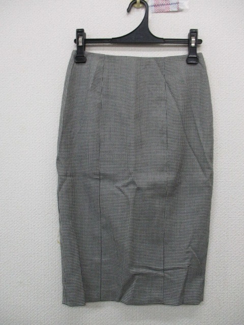 - ★ 膝丈 タイトスカート 後ろスリット 白黒/千鳥格子(36)