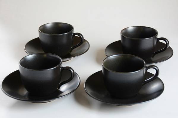 - 4客セット リンドスタイメストEBONYエボニ黒いカップ&ソーサー (複数落札可能)