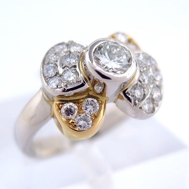 - K18YG/Pt900 イエローゴールド プラチナ リング 指輪 ダイヤモンド0.425ct/0.580ct 12.5号 おしゃれ 普段使い リボン【中古】/10001625