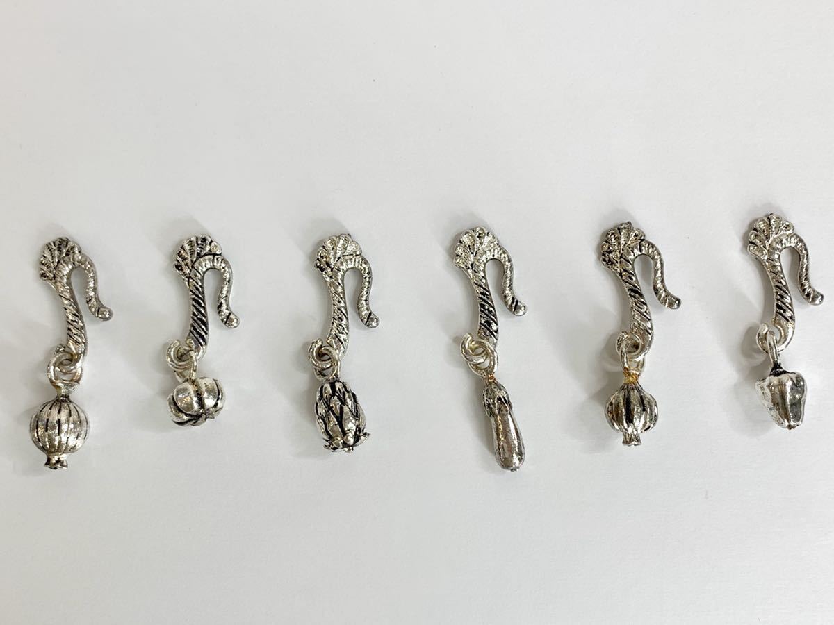 - ▼ 金属製 シルバーカラー グラスマーカーフック 野菜モチーフ 6個セット 極美品 管理2111 M-14