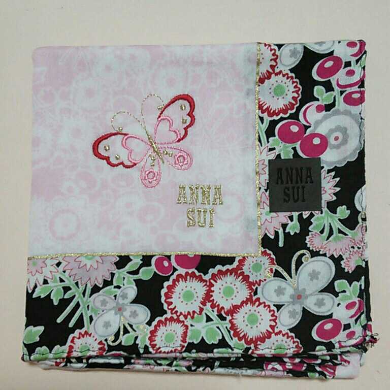 - ANNASUIアナスイ ハンカチ【 花柄/蝶・ロゴ刺繍 】ピンク