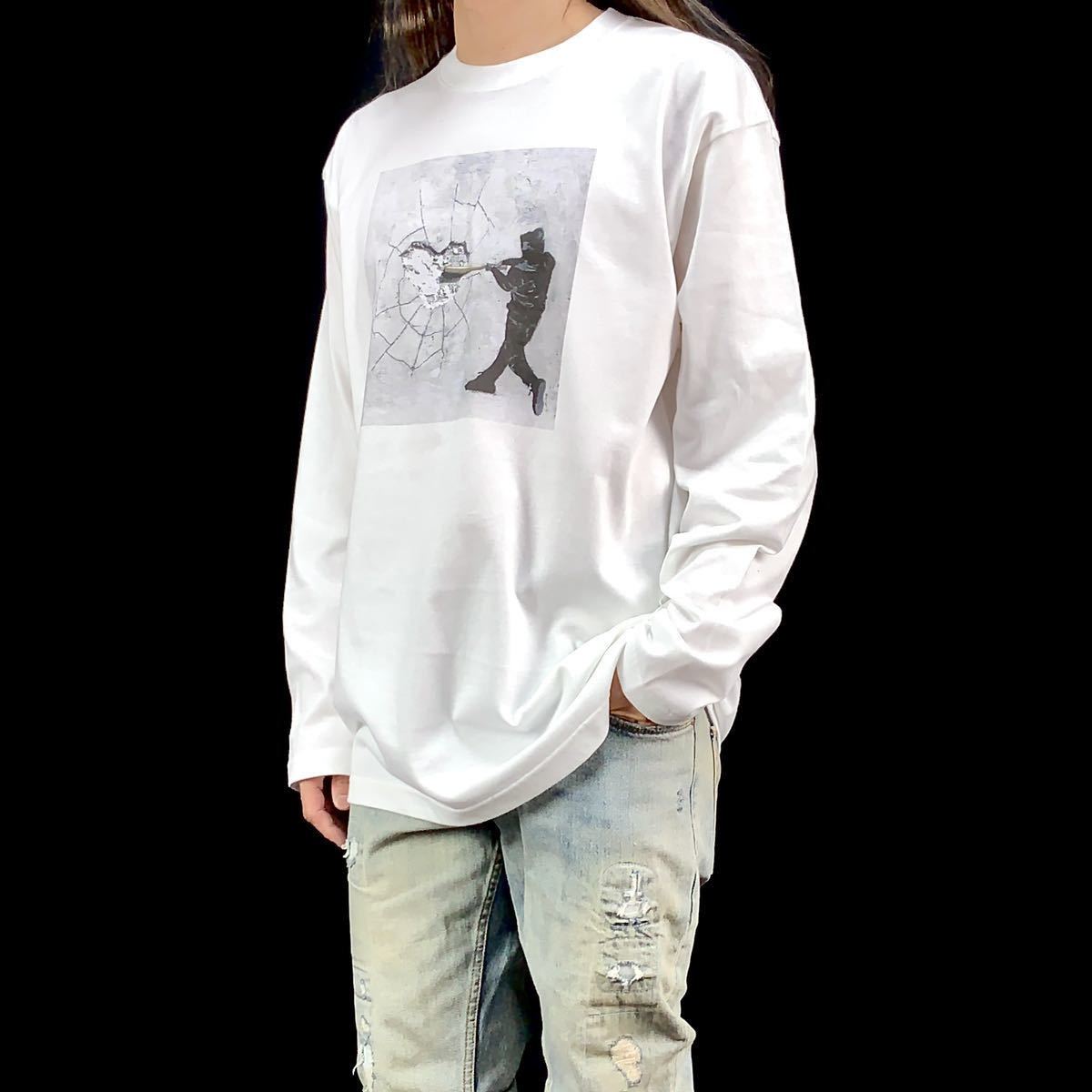 - 新品 ハイジャック ミスターブレインウォッシュ バッティング バンクシー風 オーバーサイズ ビッグ ロンT 長袖 Tシャツ XXLサイズ ホワイト
