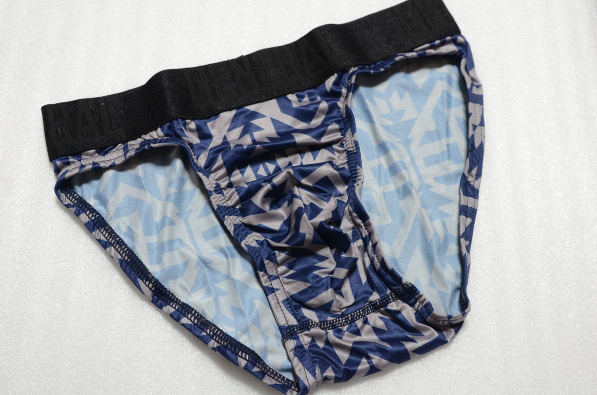 - 『送料無料』★GENERAL★ツルツル光沢★メンズ ビキニショーツ★柄物★Lサイズ★紺×グレー★