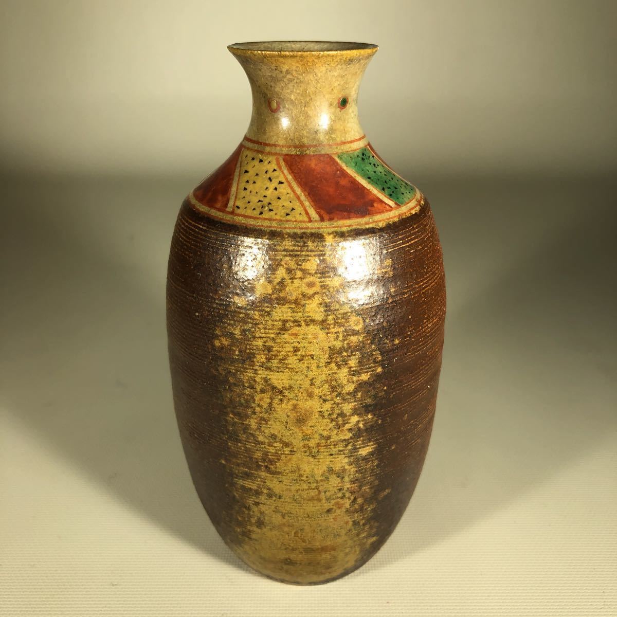 - 森一蔵作 朝日焼 焼締三色徳利 共箱 酒器る 888