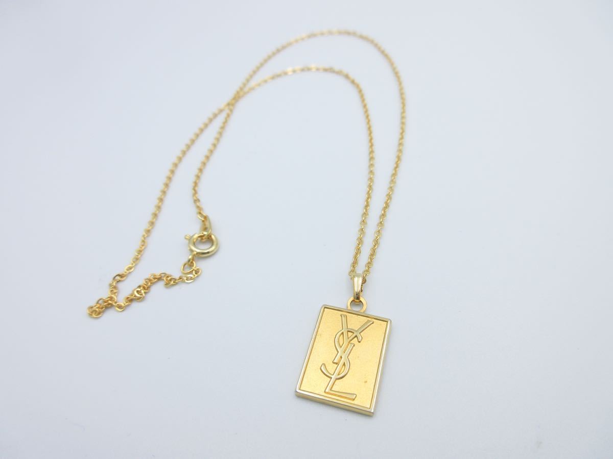 > 【美品】イブサンローラン ロゴ YSL プレート ネックレス Yves Saint Laurent ヴィンテージ プレゼント 結婚式 O6