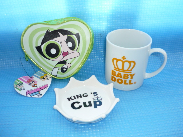 > b非売品★未使用★BABYDOLL(ベビードール) マグカップ イエローとPowerpuff Girls ハート型ポーチ他3点