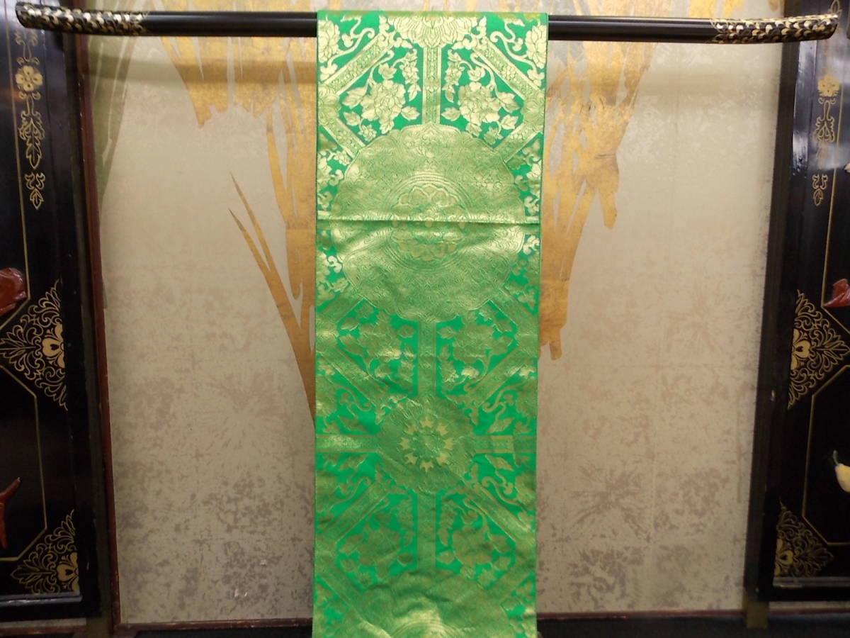 > きもの今昔3170 袋帯 西陣織グリーン地色に金の華紋柄 軽くて扱い安い