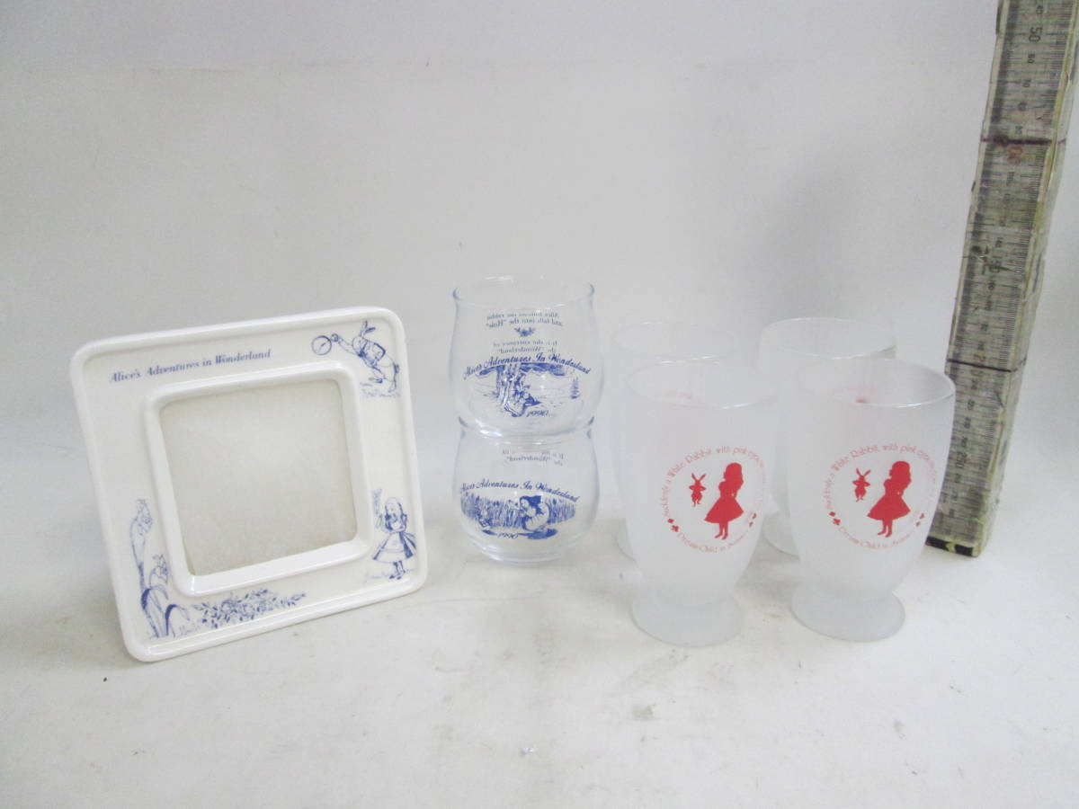 - アリス・イン・ワンダーランド 陶器フォトフレーム+ グラス+ホワイトラビット 4個 6コ未使用