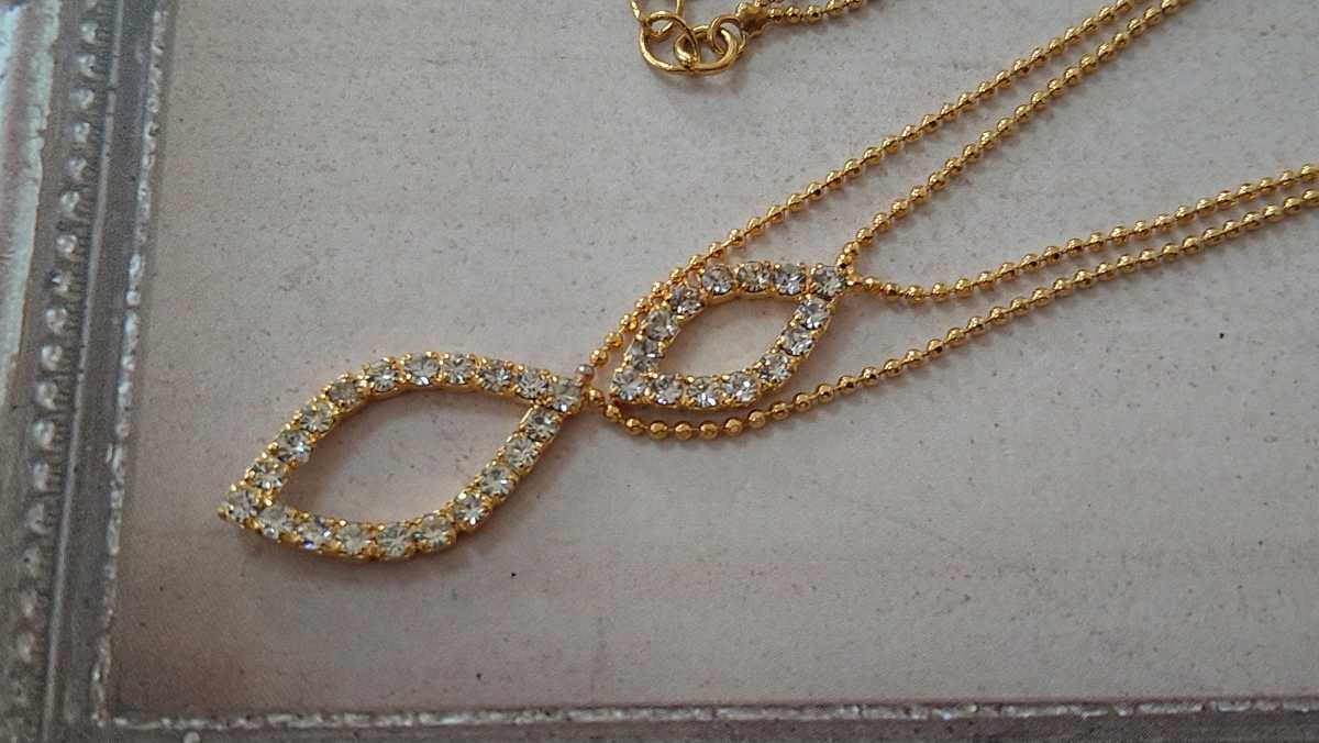 - □アーモンド型×ラインストーン×ゴールドカラーチェーン・ネックレス□
