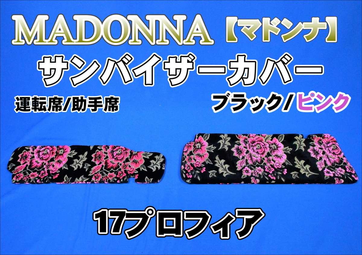 - 17プロフィア用 マドンナ柄 サンバイザーカバー 運転席助手席セット ブラックピンク