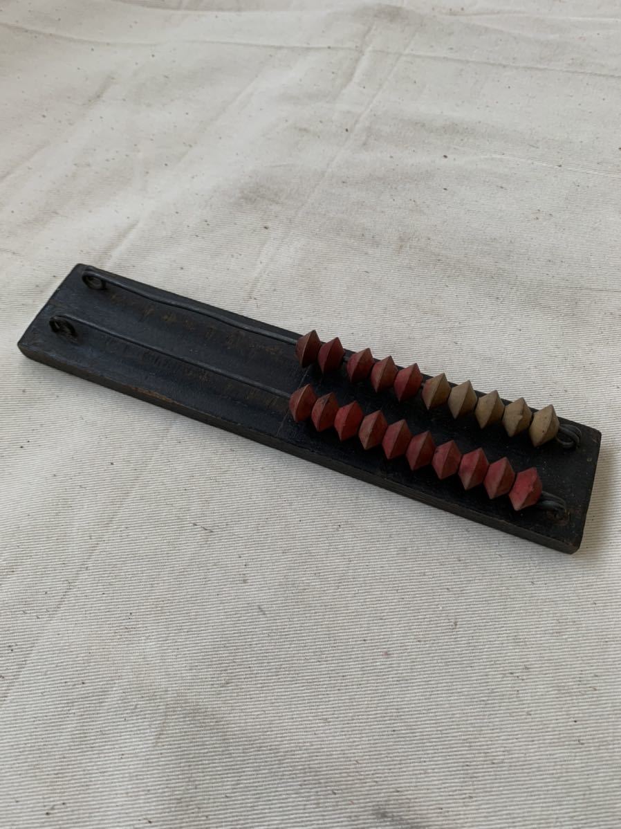 - 古い木製ニ桁そろばん算盤 古道具古物骨董アンティークビンテージ昭和レトロ時代当時物インテリアディスプレイコレクション飾り雑貨珍品