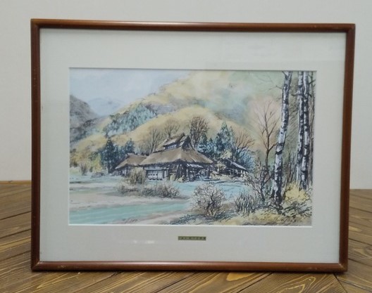 - C⑭★岩下正芙美 「信濃原村の民家」 リトグラフ手彩色 4/100 元陽会 作者サイン★