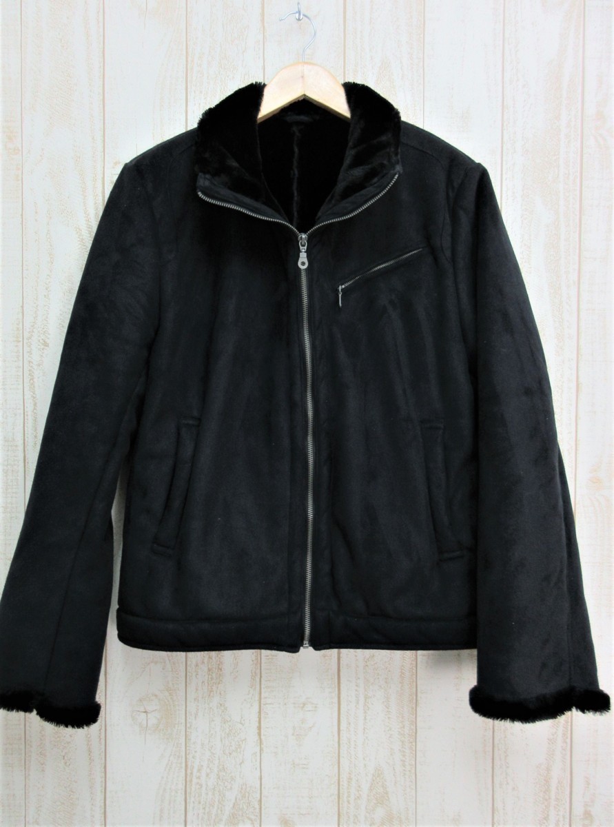 > レノマ/U.P renoma:フェイクスエード ブルゾン ジャケット 裏ボア ブラック サイズL/メンズ/紳士/中古/USED