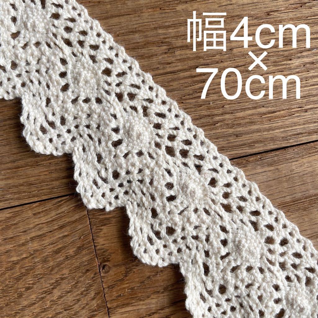 > レース アイボリー 蚤の市 フランス デットストック アンティーク ノスタルジック ビンテージ クロッシェレース ハンドメイド コットン