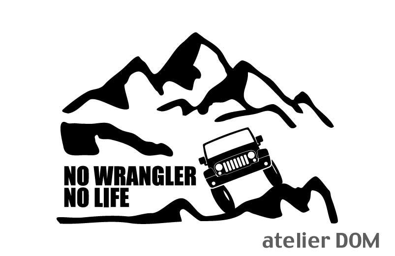 - 山とJEEP ジープ ラングラー JK36S ステッカー NO WRANGLER NO LIFE (Lサイズ) カッティングステッカー 切り文字