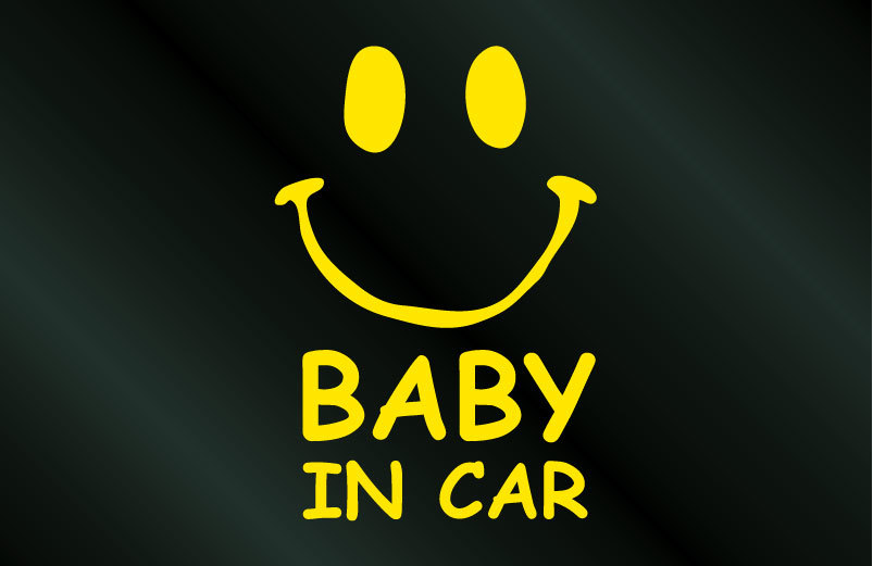 - 手描き風 BABY IN CAR ニコちゃんステッカー Aタイプ