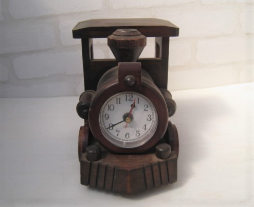 > 14N3.3-9 木製 SL 機関車 列車 汽車 置時計 時計 インテリア 飾り オブジェ 動作OK 単三電池×1本必要