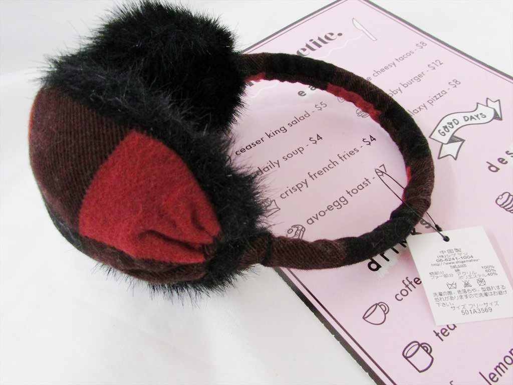 - チェック柄 イヤーマフ フェイクファー レッド MUF104