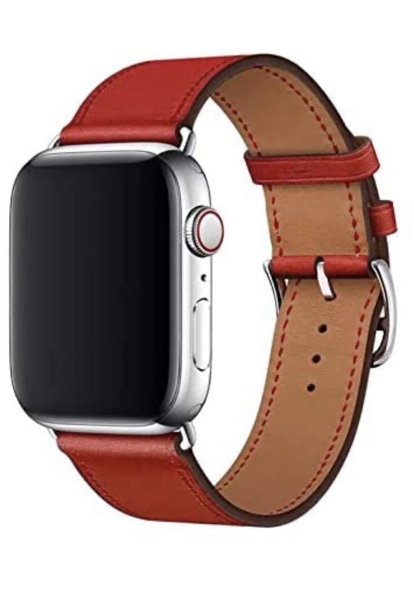 - Apple Watch アップルウォッチ バンド 革ベルト レザーベルトレザーストラップ 38/40/41mm シリーズ2345678SE対応 赤 上品