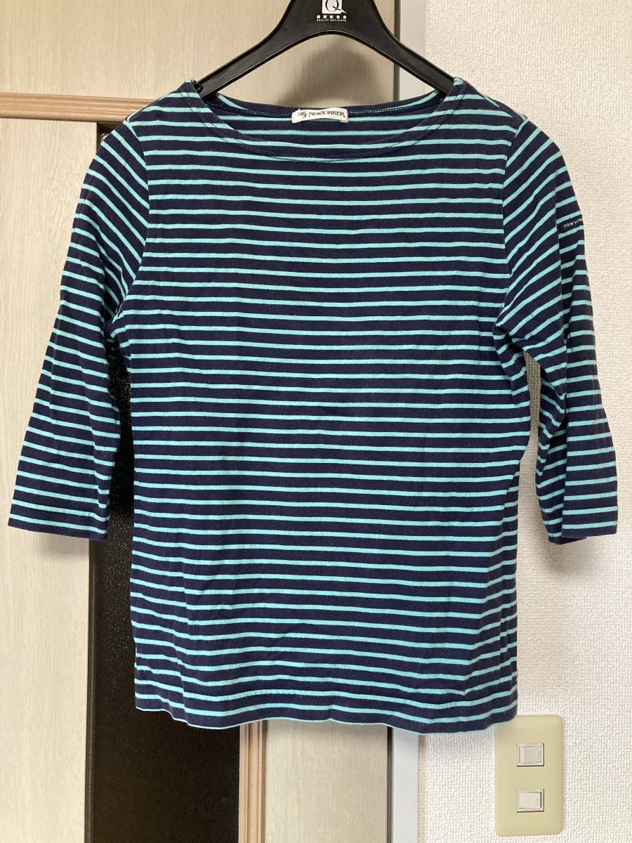 > ★ニューヨーカー NEWYORKER 七分袖 Tシャツ ボーダー 綿100% カットソー 紺 水色 Lサイズ レディース