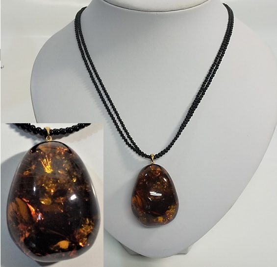- 103★最終80%OFF 琥珀 天然石 ネックレス コニャックアンバー 不定型 K18 丸玉2連 48cm 展示品★AN2105