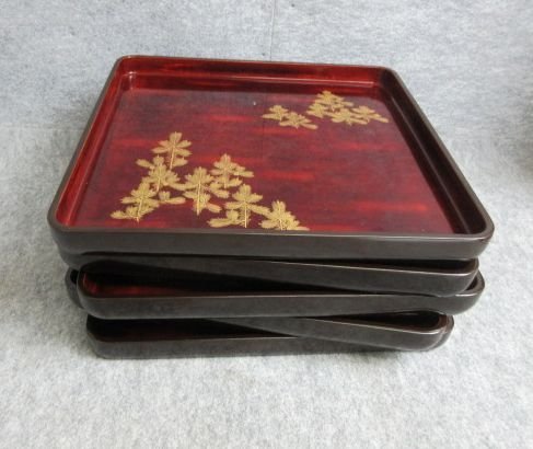 会席膳 5枚です。寸法は高さ3.5cm、縦33cm、横33cmです。状態は主観ですが綺麗だと思います。120サイズ、ゆうパックで発送を予定しています。