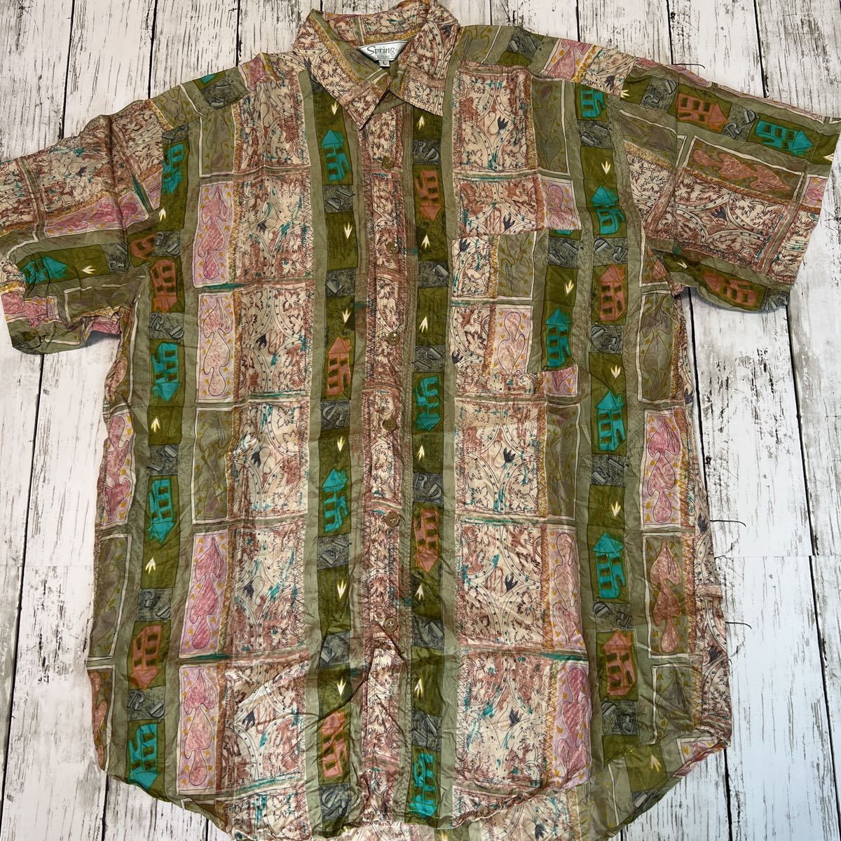 - Spring ITALY 100% PURE SILK 総柄 柄シャツ レトロ アート ビンテージ 半袖シャツ