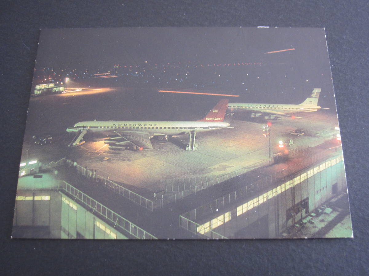 - ノースウエスト航空■ルフトハンザドイツ航空■NORTWEST■LUFTHANSA■B707■夜の東京国際空港■昭和■1970's■絵葉書