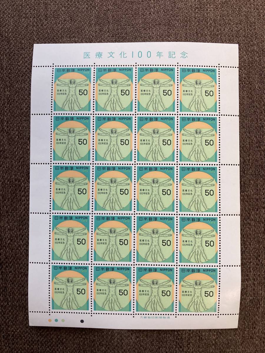- ★未使用 医療文化100年記念 レオナルド・ダ・ビンチ人体デッサン 昭和54年 1979年 切手シート 50円 20枚 日本郵便 大蔵省印刷局製造