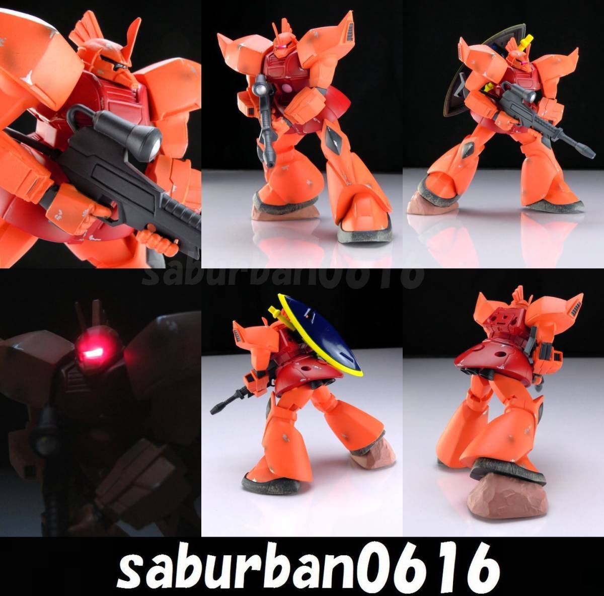 > G0506 1st シャア専用 ゲルググ MS14S モノアイ LED 電装 ライト 点灯 ジオン 指揮官 ファースト 0079 初代 ウェザリング 塗装済 完成品