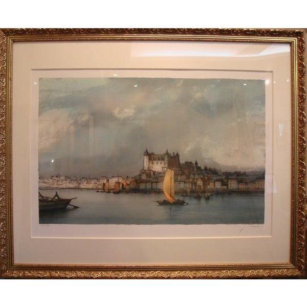 - 即決 フランソワ・ディザル二 「湖畔のシャトー」版画12号サイズ