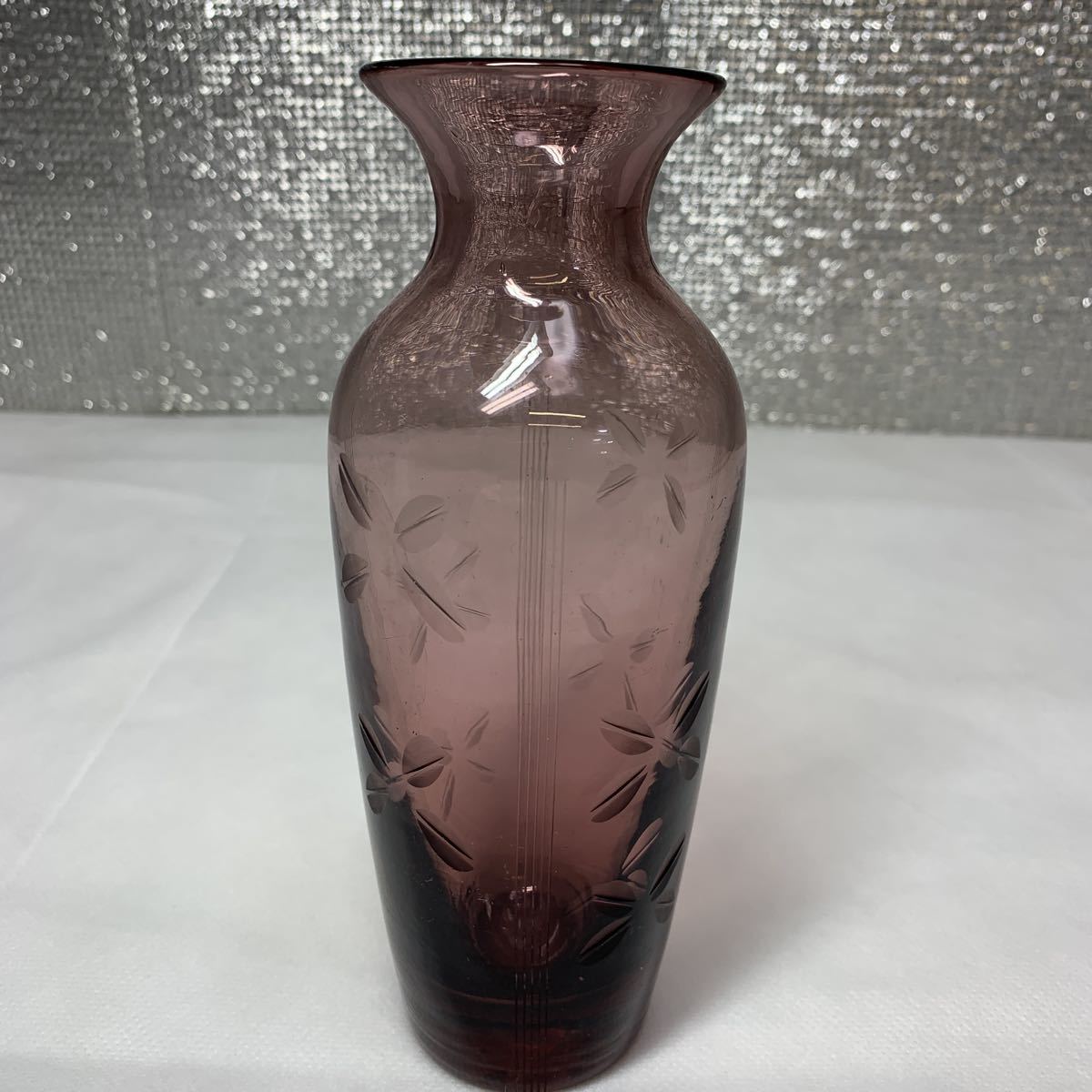 - ★大阪堺市/引き取り可★硝子 花瓶 一輪挿し 花器 昭和レトロ 花柄 花びら 高さ約19cm アンティーク ガラス製★