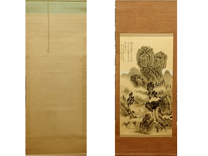 - 【工芸印刷】 佐久間象山 日本画 象山 松代藩士 幕末 山水 掛け軸 紙に印刷 合箱 Japanese hanging scroll インテリア 信州