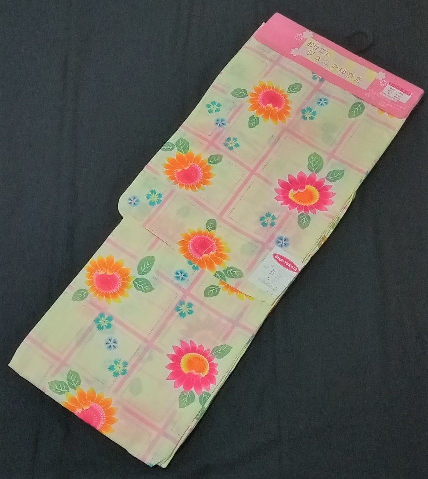- 6703 綿 浴衣 ストロベリーサイズ 「ひまわり・格子」