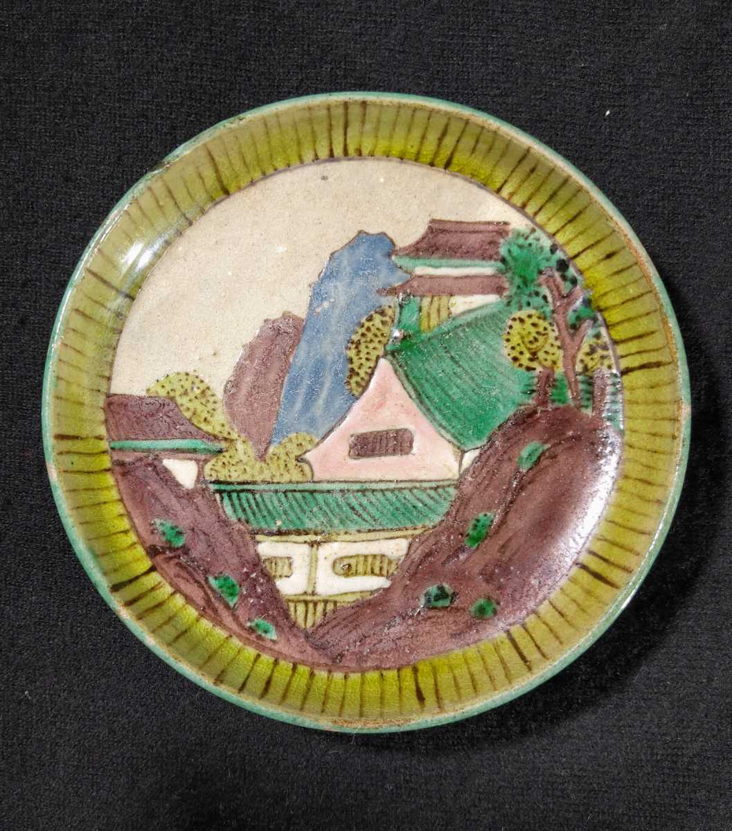 - 再興九谷 青手 色絵 風景図 小皿 江戸後期 九谷焼 btr-26b2212