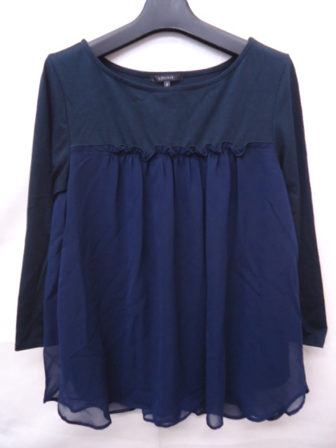 - 【KCM】kof-237★新品★【LOUNIE/ルーニィ】シフォン切替 七分袖カットソー ネイビー系 サイズ F レディース