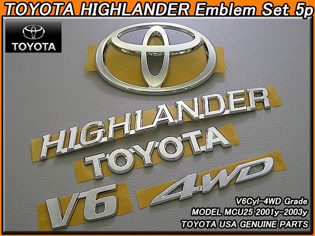 > クルーガー前期MCU25/TOYOTA/トヨタHighlander純正USエンブレムセット-前後5点(3.0L.V6-4WD)01-03y/USDM北米仕様USAハイランダーTマークAWD
