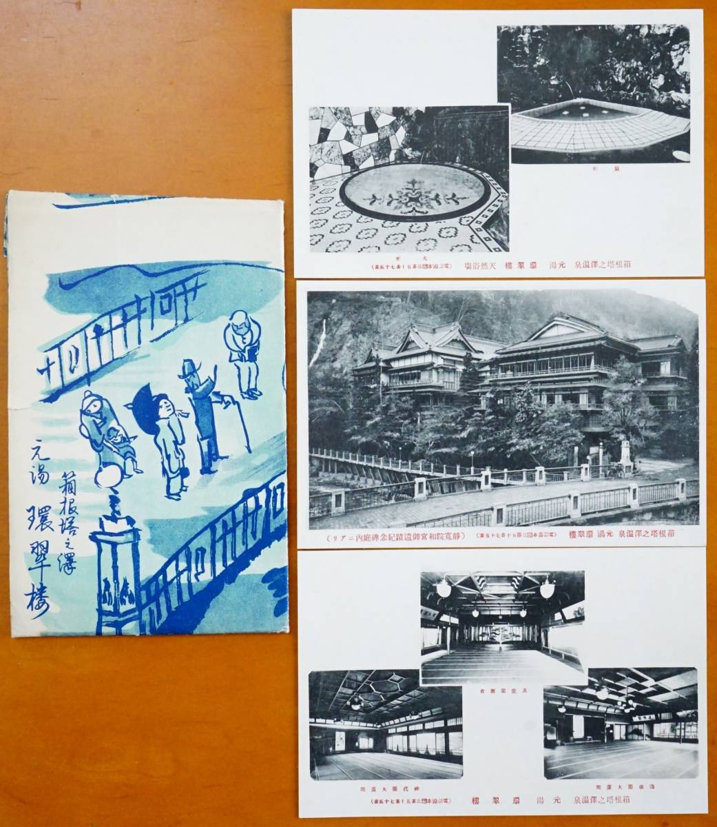 - 箱根塔ノ沢 元湯環翠樓絵葉書3枚 袋付き 検索:天然浴場 大広間 静寛院宮和宮さま御遺蹟記念碑 環翠楼 箱根塔ノ沢温泉老舗旅館