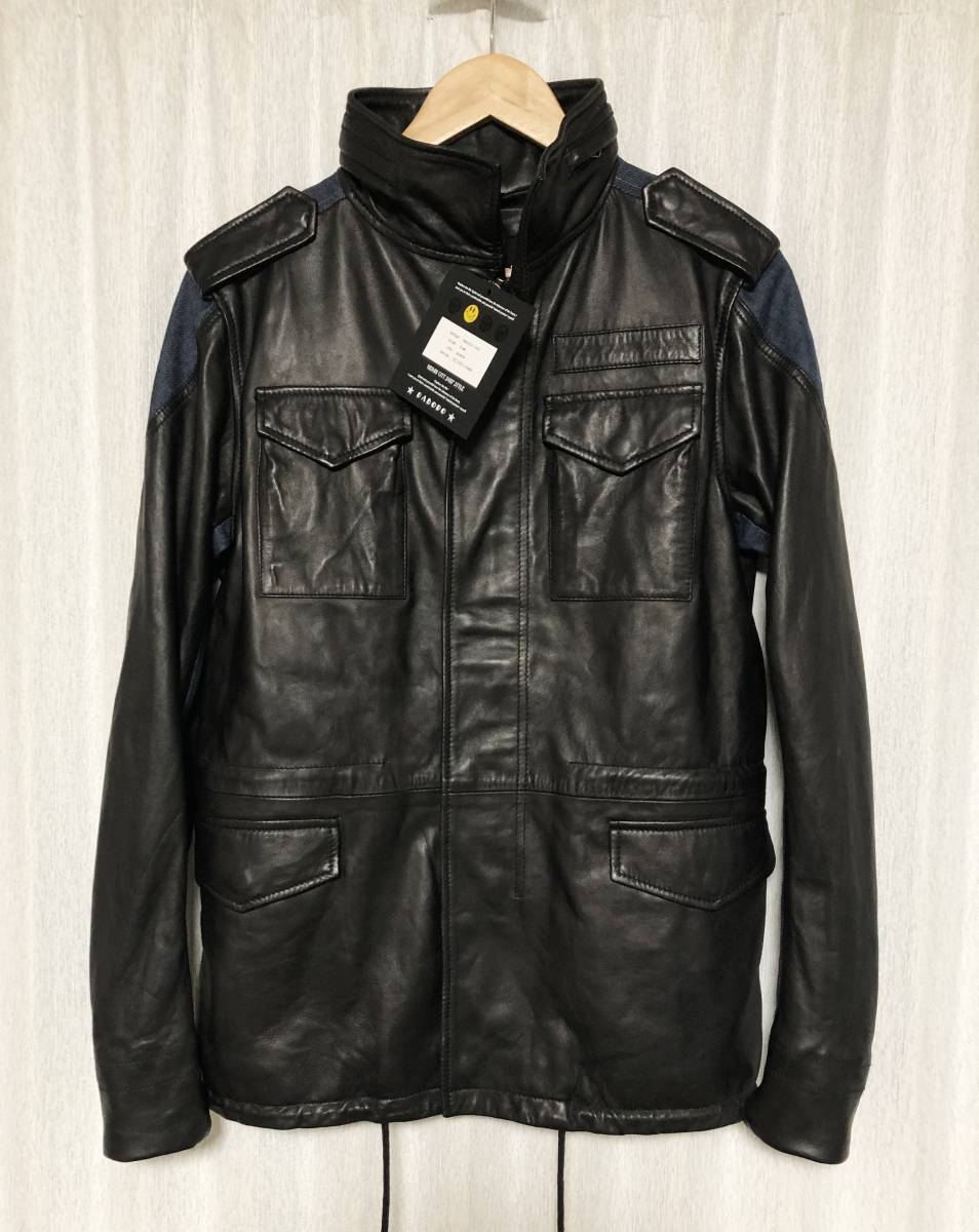 > 未使用☆[daboro] 定価102,600 LEATHER×DENIM M65 デニム切替 ミリタリーレザージャケット 3 M ブラック インディゴ ダボロ