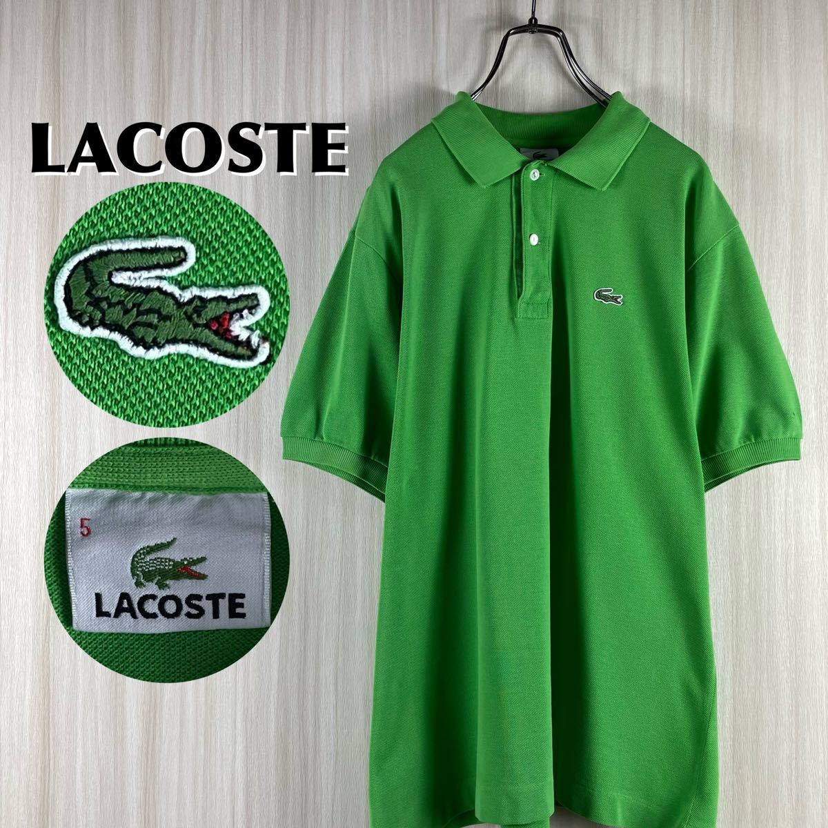 - 【王道アイテム】LACOSTE ラコステ ワニ 鹿子 シェルボタン サイドスリット 半袖ポロシャツ サイズ5 ライトグリーン L相当 フレンチ古着