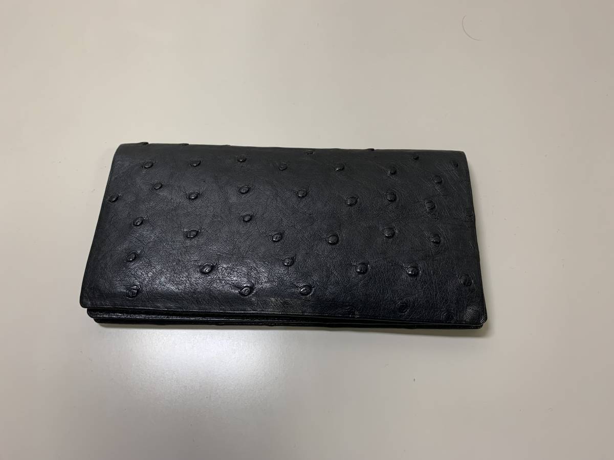 - 【質屋 尾張屋商店 東京】オーストリッチ 2つ折り長札入れ 黒