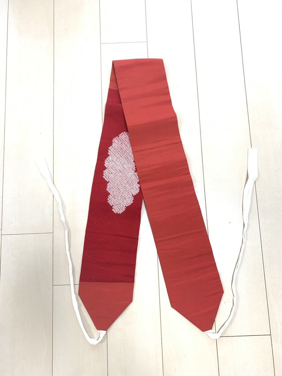 - 赤色 半幅帯 半巾帯 サイズ(約) 横幅15.5cm/ 長さ165cm / 厚み0.3cm 紐長さ 60cm English Ok