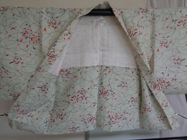 - b162-80 正絹 縮緬 羽織 蝶々舞文 昭和レトロ 着物 アンティーク