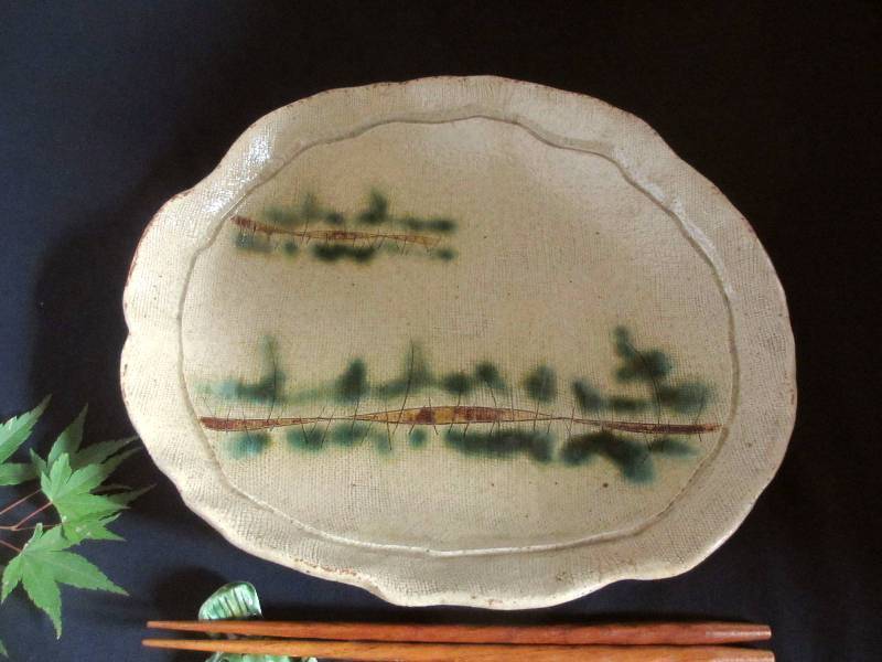 - 大皿 黄瀬戸 草原紋 楕円盛皿 (現品) 康元窯 佐藤公一郎 SK-104