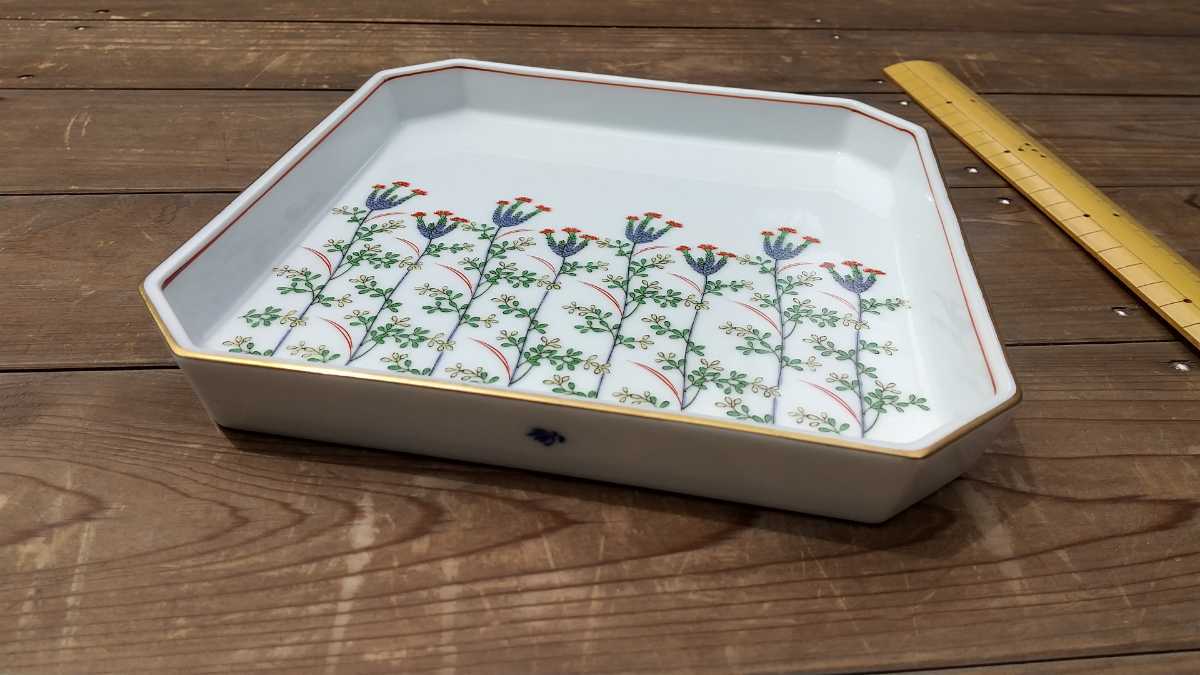 - 香蘭社 隅切り八角金彩縁赤絵草花紋菓子皿