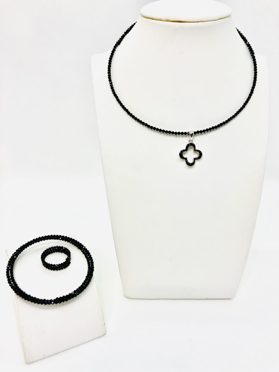 - 【新品】ブラックスピネルネックレス・リング・ブレスレットセット*形状記憶ワイヤー*フリーサイズ*天然石*スピネル