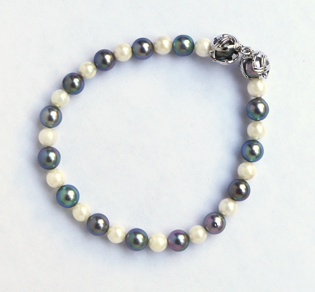 - 国産あこや本真珠・黒染真珠 ブレスレット パックマン留め具
